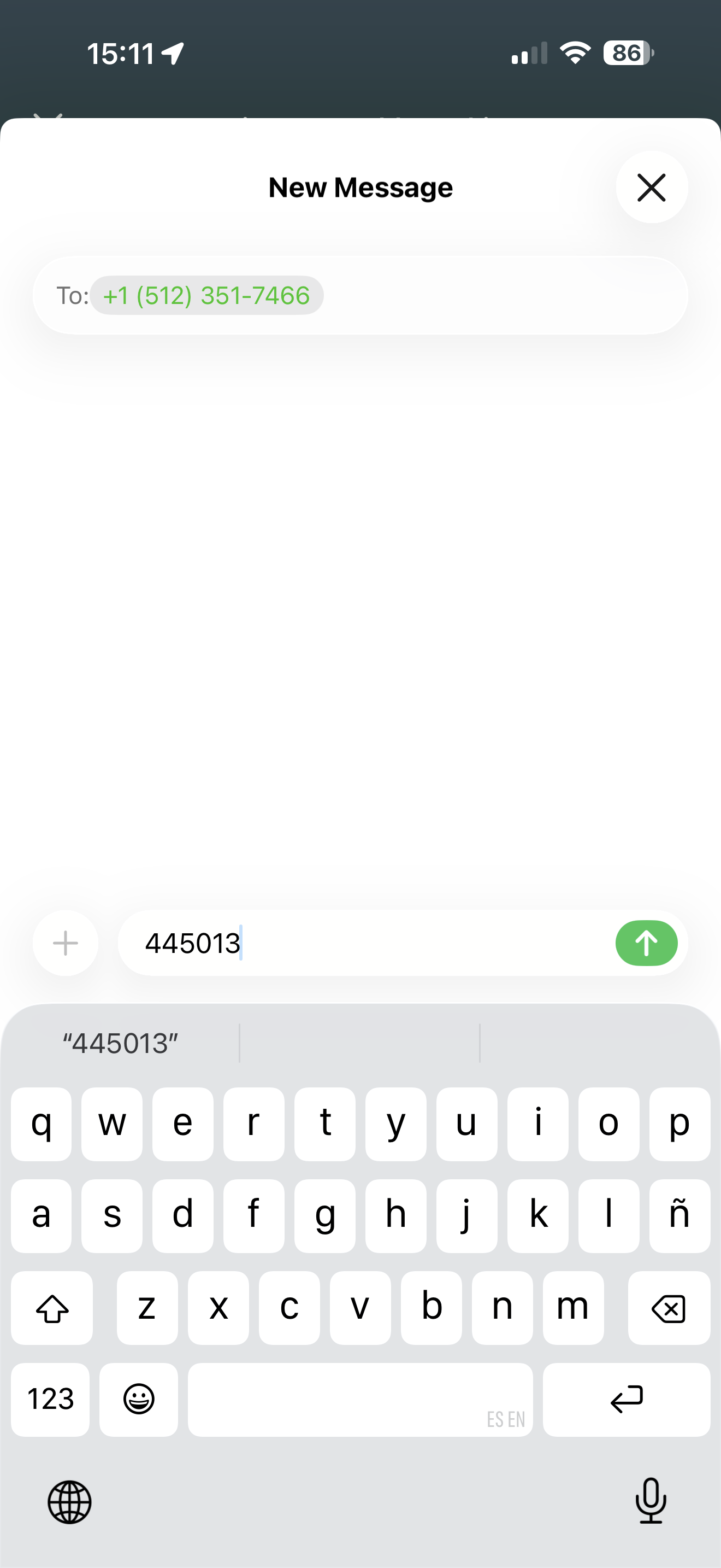 - In the text message screen that appears, send the automatically generated code composed in the text message.
