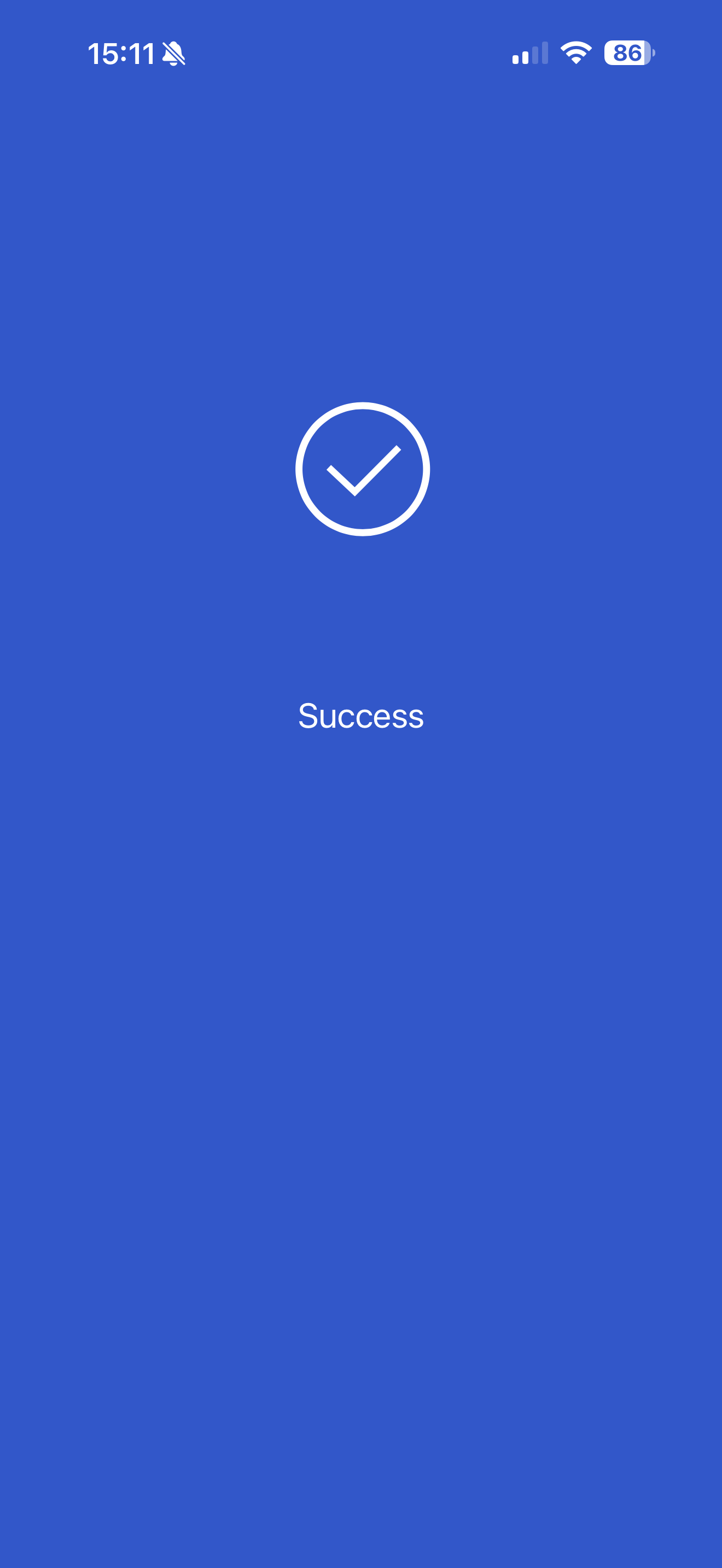 - The system will respond via text message confirming the device has been registered, and the app will confirm with a Success screen.