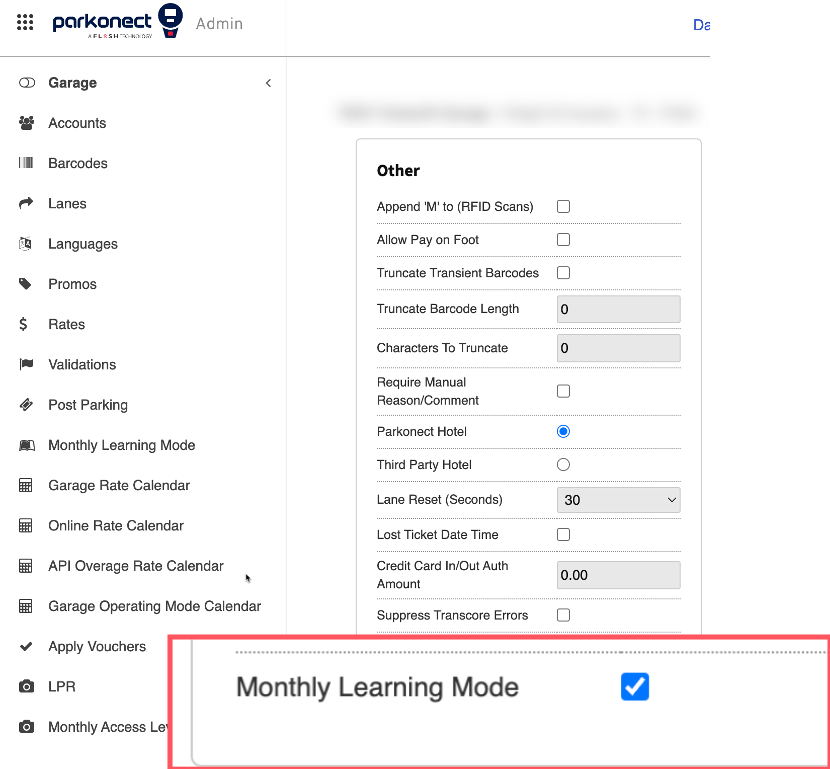 - Enable Monthly Learning Mode from the Parkonect Admin portal.
