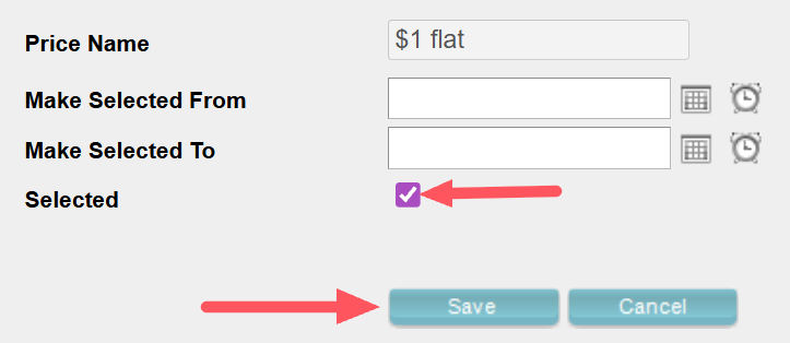 In the Admin Portal, you can use the Make Selected From and Make Selected To fields to schedule temporary prices for one-time events. When the schedule ends, the system automatically reverts to the previous rate.