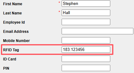 - RFID tags require the following entry format: [facility code][colon][card ID number] ex: 183:123456