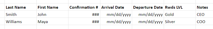 Email the completed spreadsheet to arrivalslist@flashvalet.com from the hotel system or a pre-approved email address.
