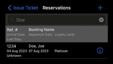 If the reservation is not found in the populated list, tap the “+” to manually enter the Reservation Name.