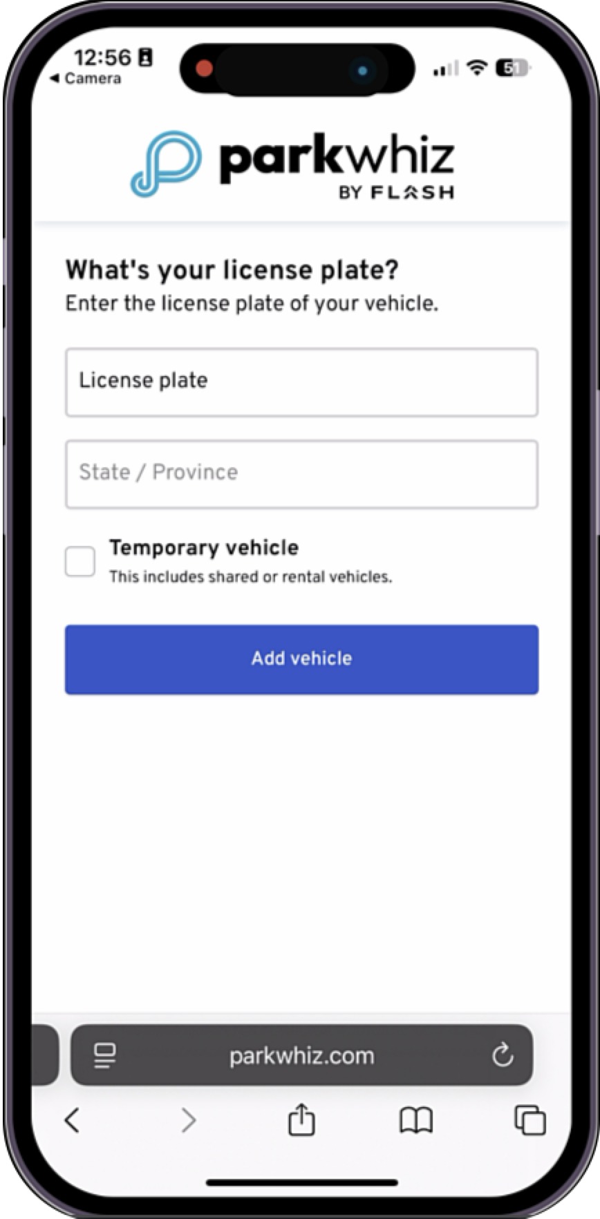 | What’s your license plate? For current ParkWhiz users, their account vehicles are automatically populated with an option to add a new vehicle.