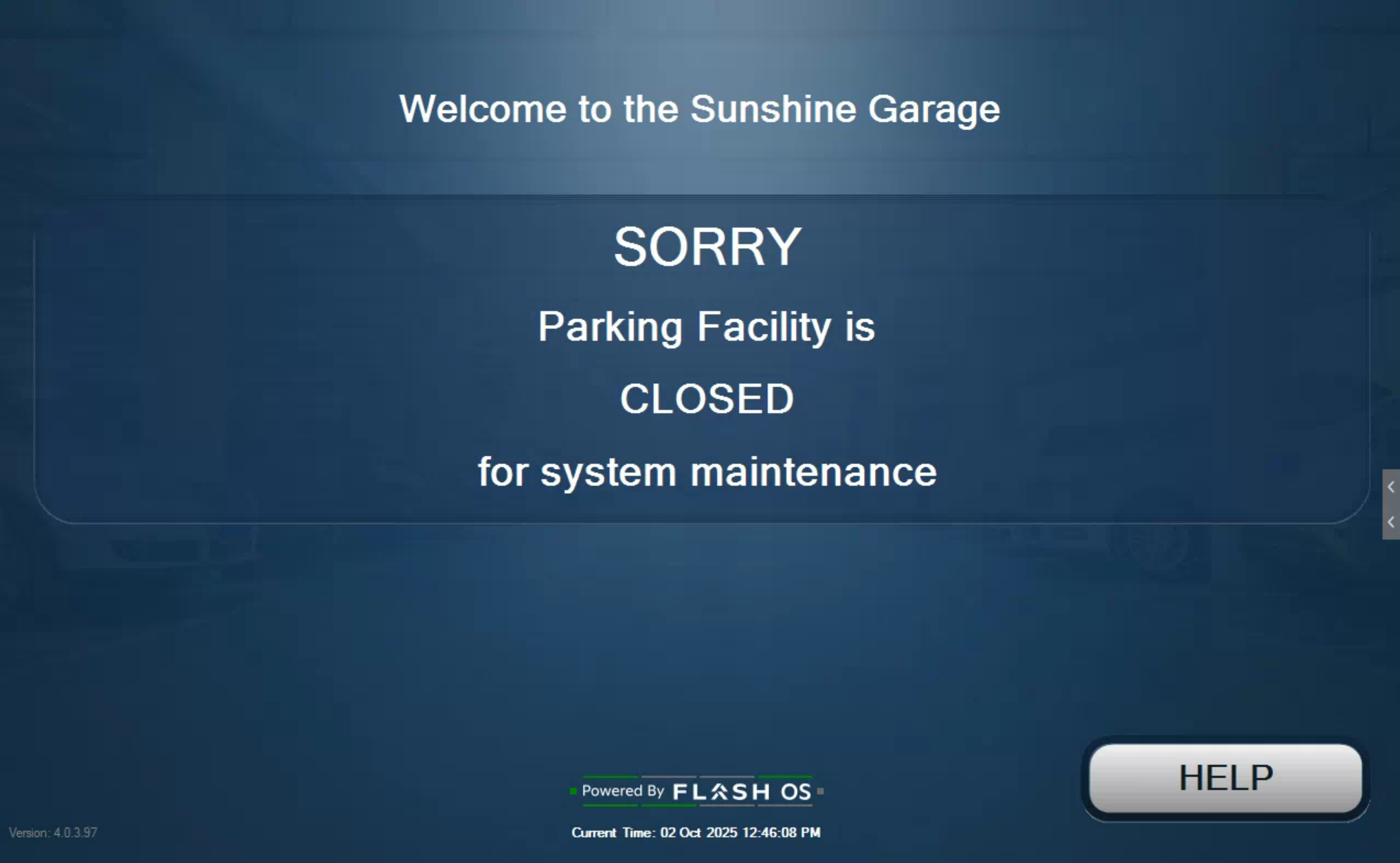 - Closed: Closed to transient parkers; open to monthly, membership, and reservation parkers. (Kiosk screen displays Closed.)