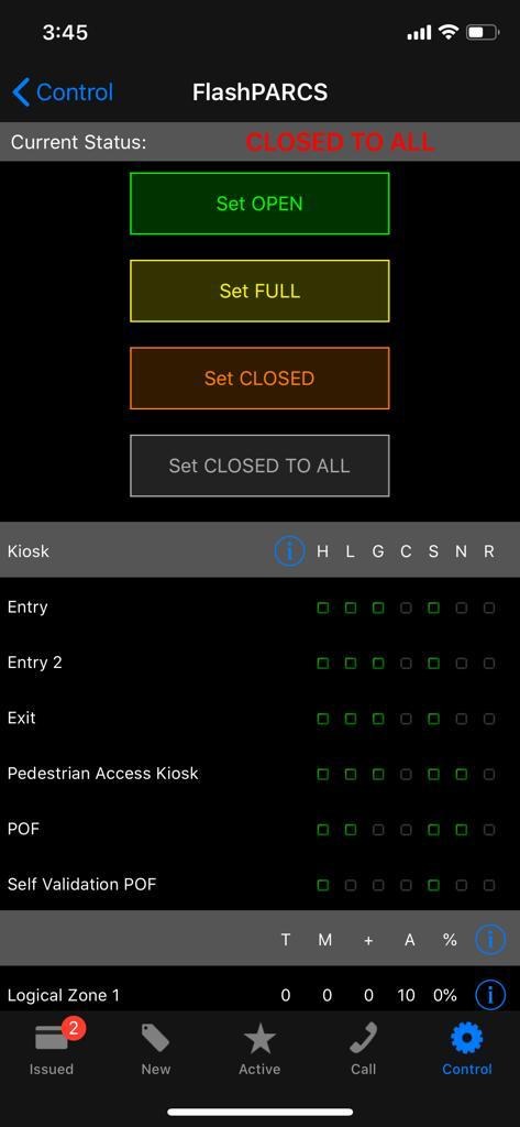 It’s also accessible by logging in to the Flash Valet app. You can find the Flash PARCS State option by tapping on the Flash PARCS tab. If the location offers Flash Valet and Flash PARCS, you would need to navigate to Control > Flash PARCS. Tap on the buttons to changes between states.