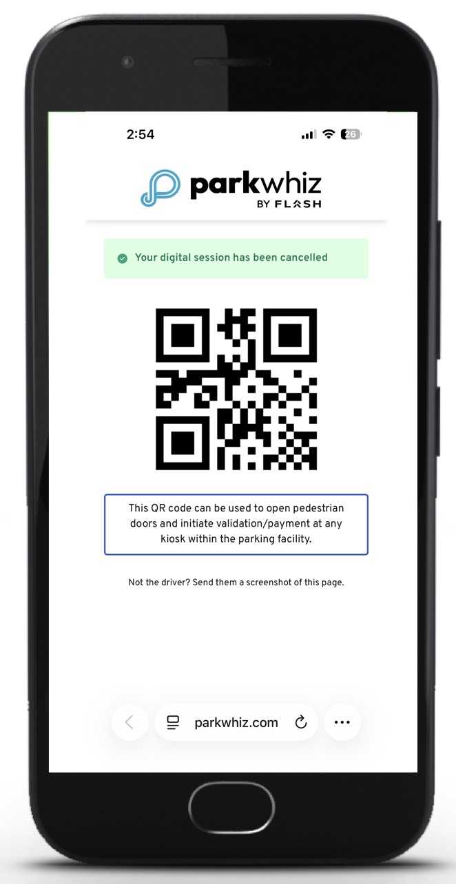 | A transient ticket barcode is provided to use on pedestrian doors or initiate validation or payment at any kiosks. | ![]() |