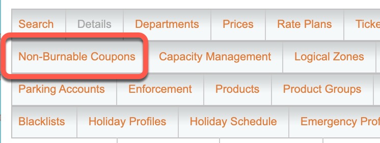 2. Select Locations tab> Location name > Non-Burnable Coupon tab from the top menu.