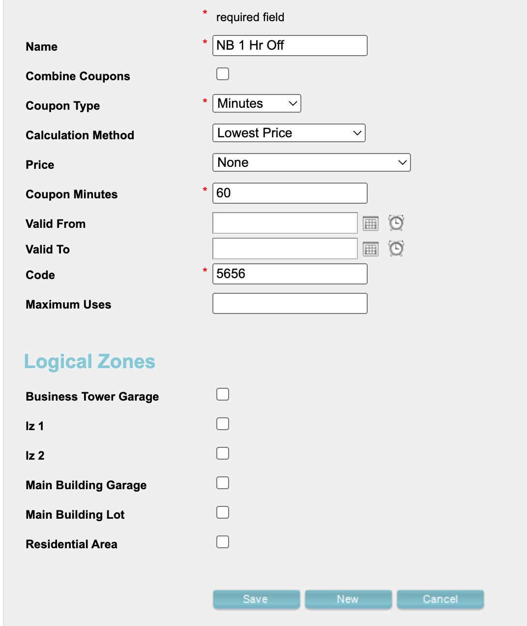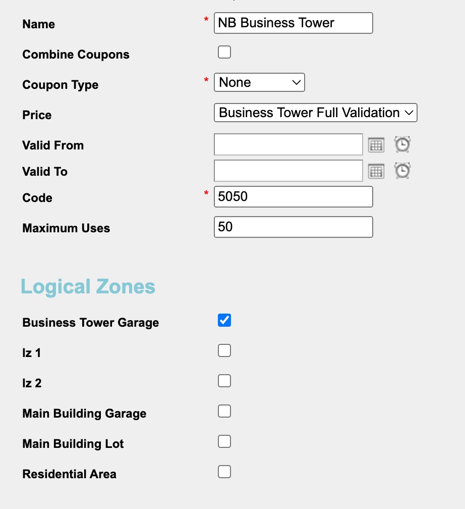 Assigns which Logical Zone the coupon can be used; if None is selected, the access defaults to all Logical Zones.