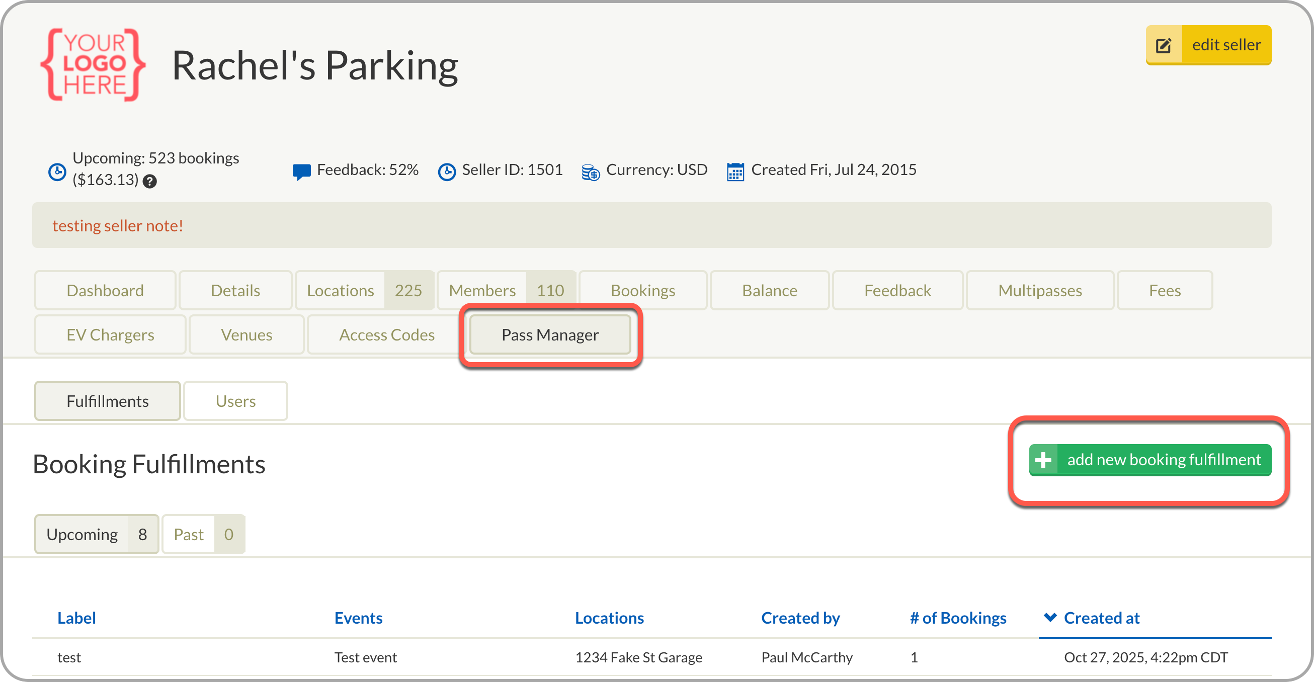 Once you have access, you’ll find Bulk Fulfillment under the Pass Manager tab in your Seller account, where you can create new fulfillments manually or by uploading a CSV file for larger groups.