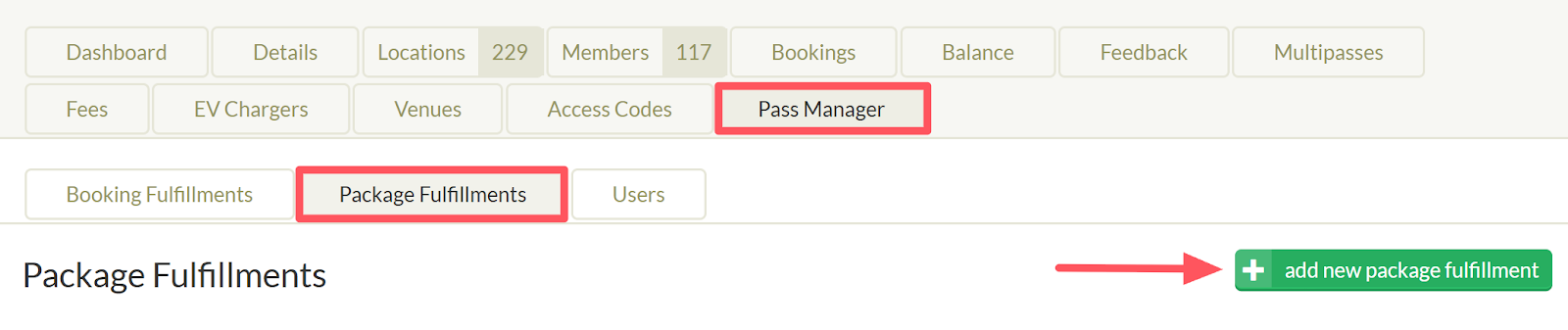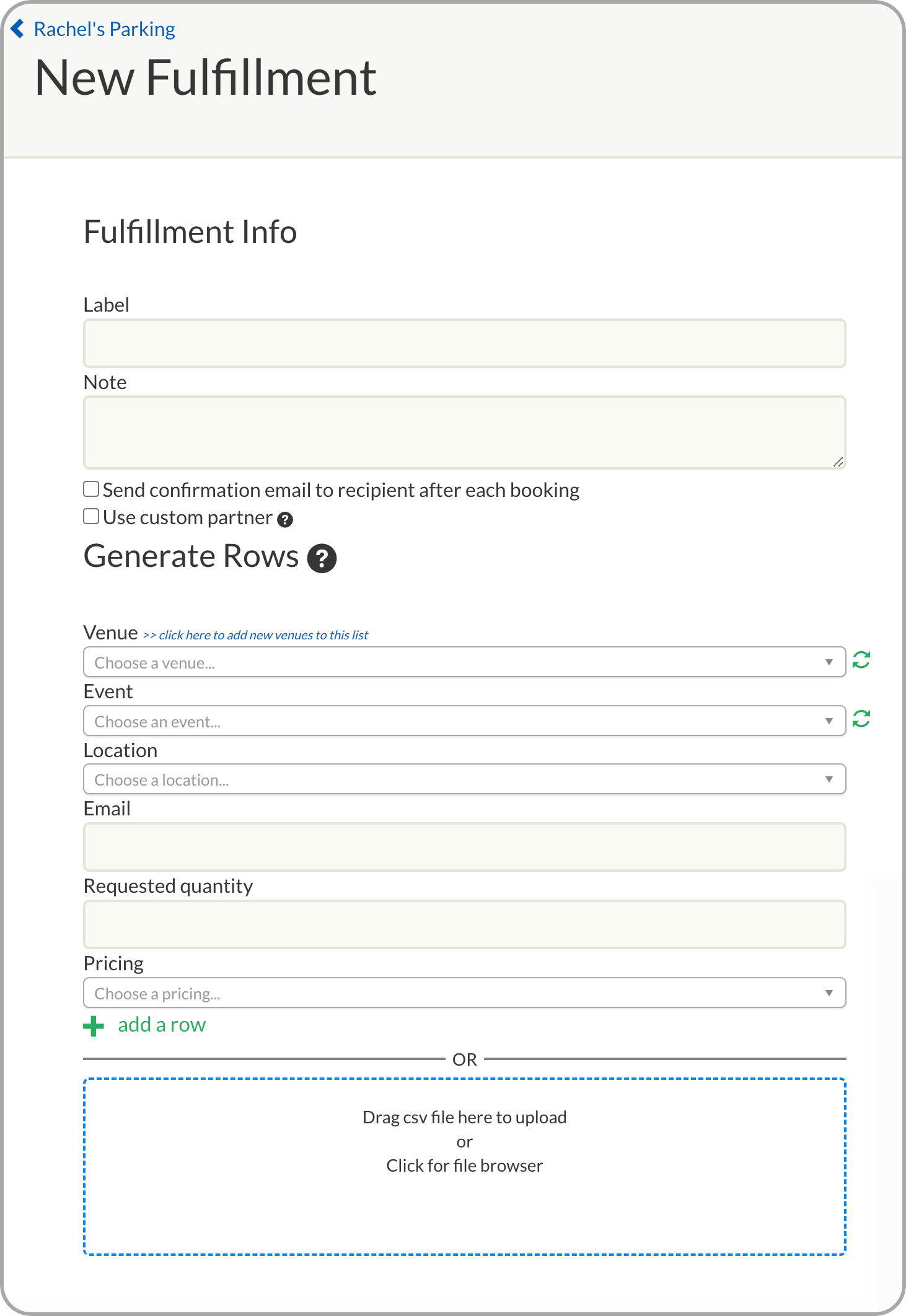- Click the green “add new booking fulfillment” button to initiate a new fulfillment.