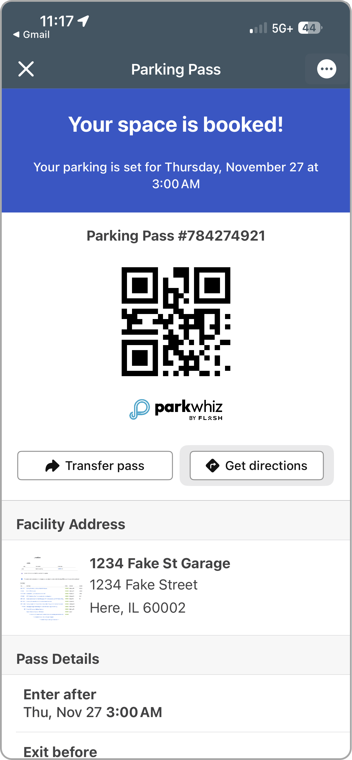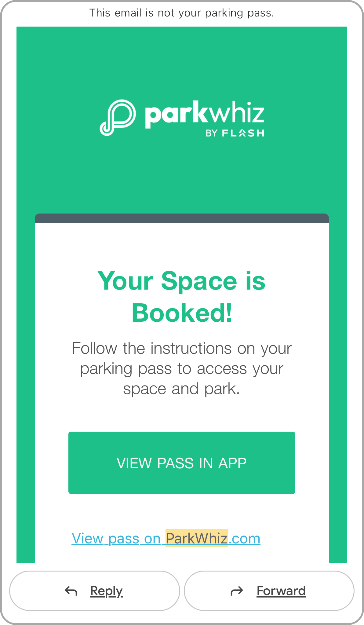 ![]() Pass Confirmation sent to designated email address | Event Pass in ParkWhiz App |