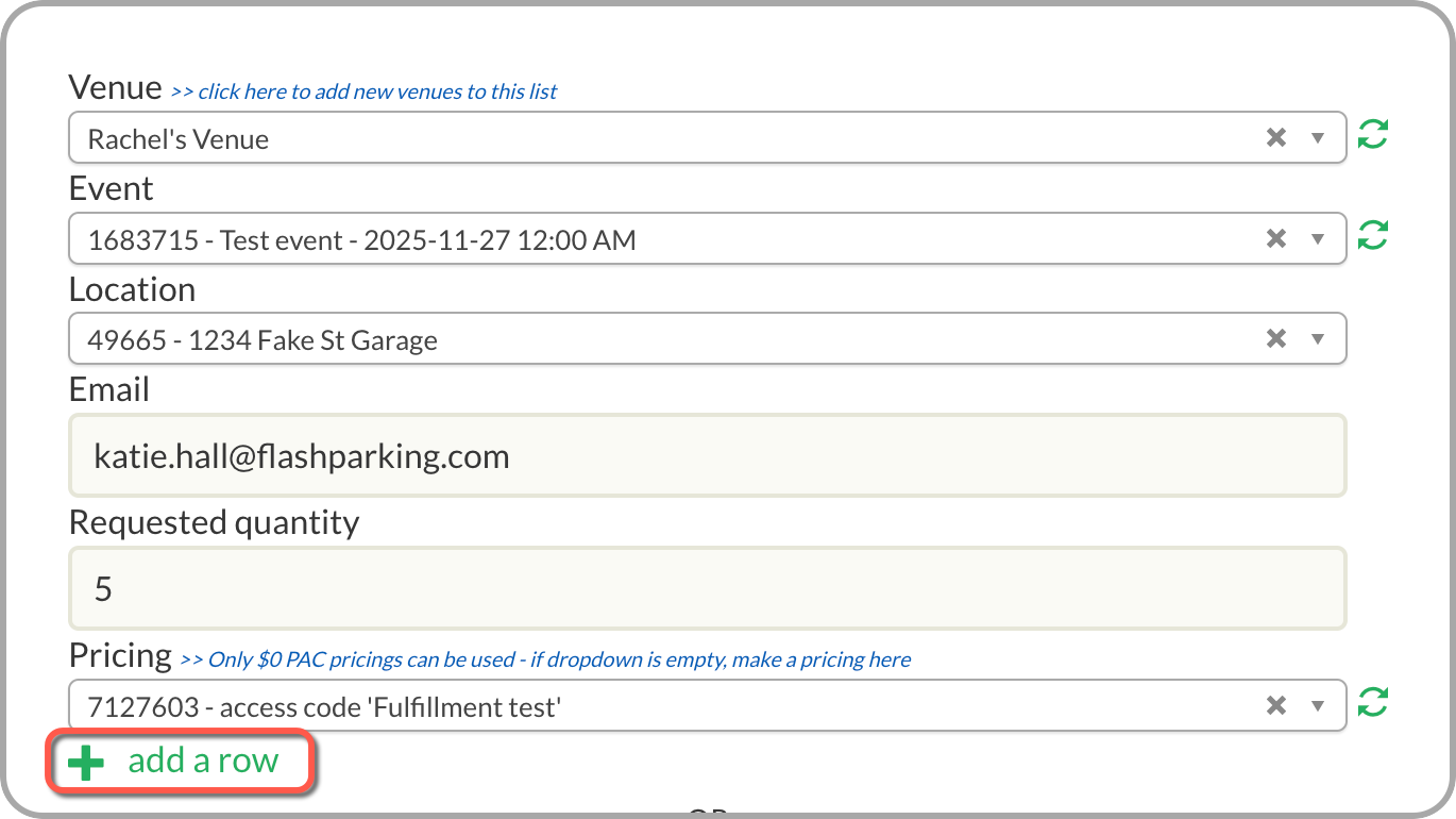 - Example: If you are fulfilling passes for three different events at one location, create three separate rows - one for each event.