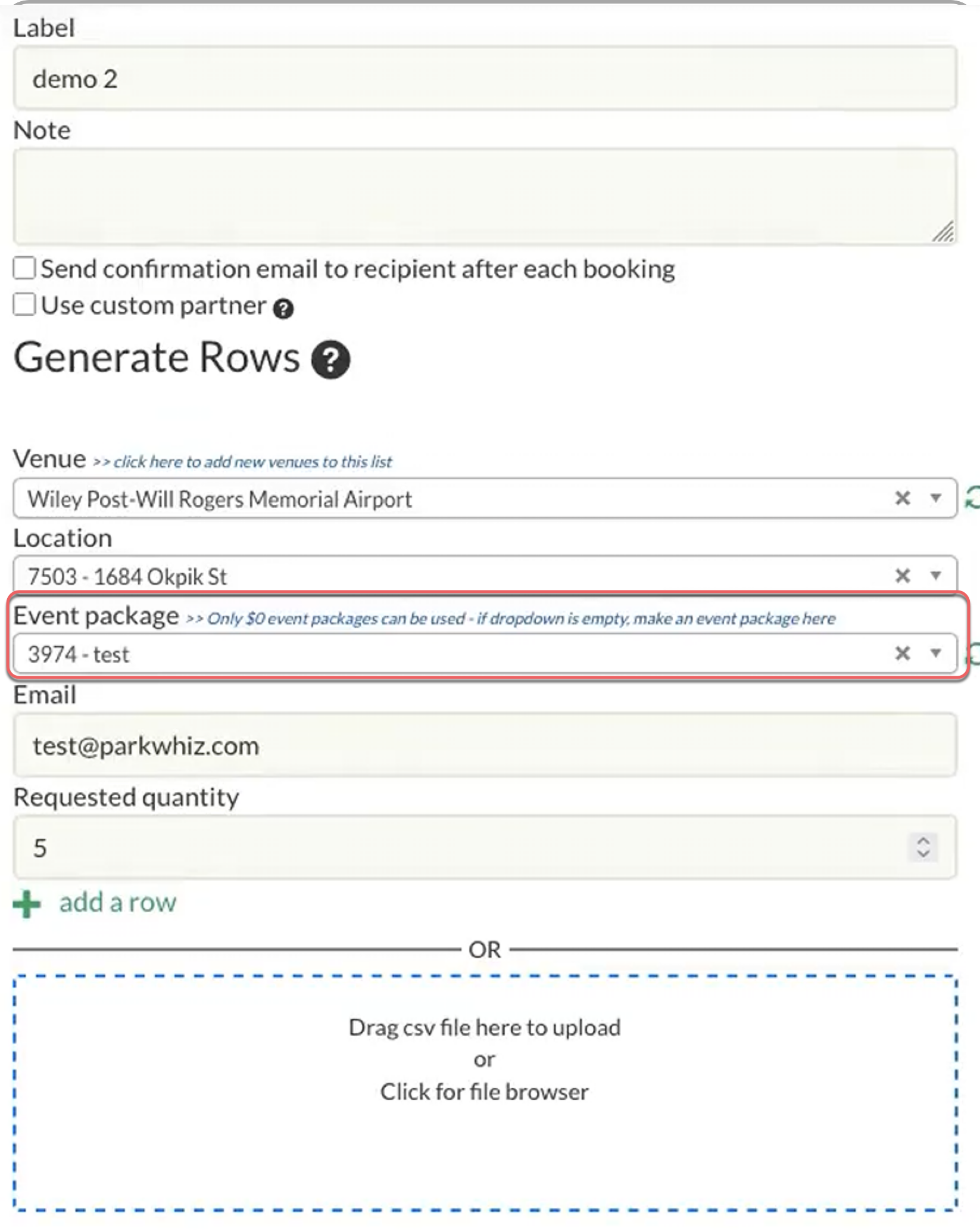 For requests over 2,000 bookings, event packages, or urgent fulfillment needs, please contact Digital Support directly at digitalsupport@parkwhiz.com.