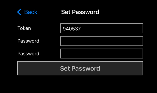 - Copy the token number to the Token field in the Flash Valet app, and input your new password in the fields below.