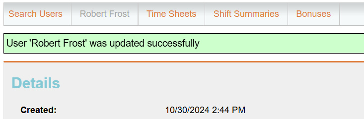 - A message indicating that the user was successfully updated will show in the upper part of the screen.