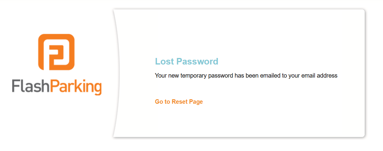 - A notification will appear on the screen, informing you that the new temporary password has been successfully sent to the email address provided . To move forward, click the Go to Reset Page link.