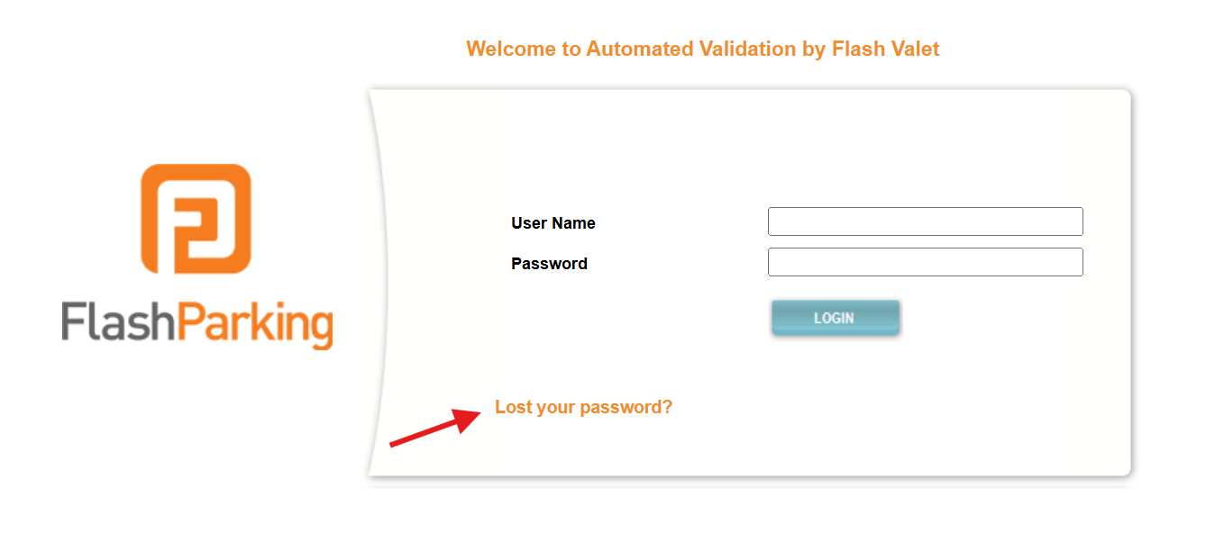 - When visiting the Flash Validation Portal, click the Lost Your Password? orange button below the login fields.