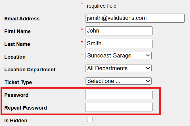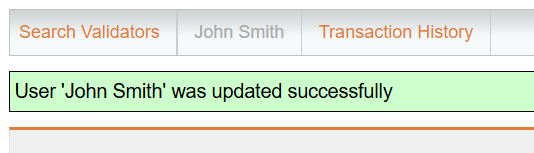 - A message indicating that the validator user was successfully updated will show in the upper part of the screen.