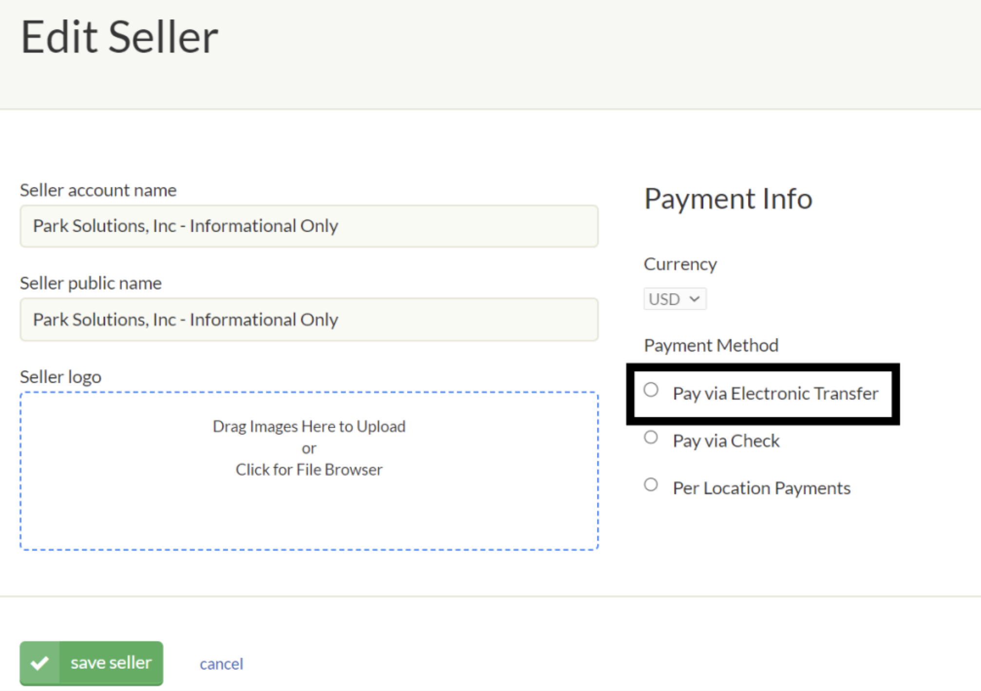 - Select Edit Seller
