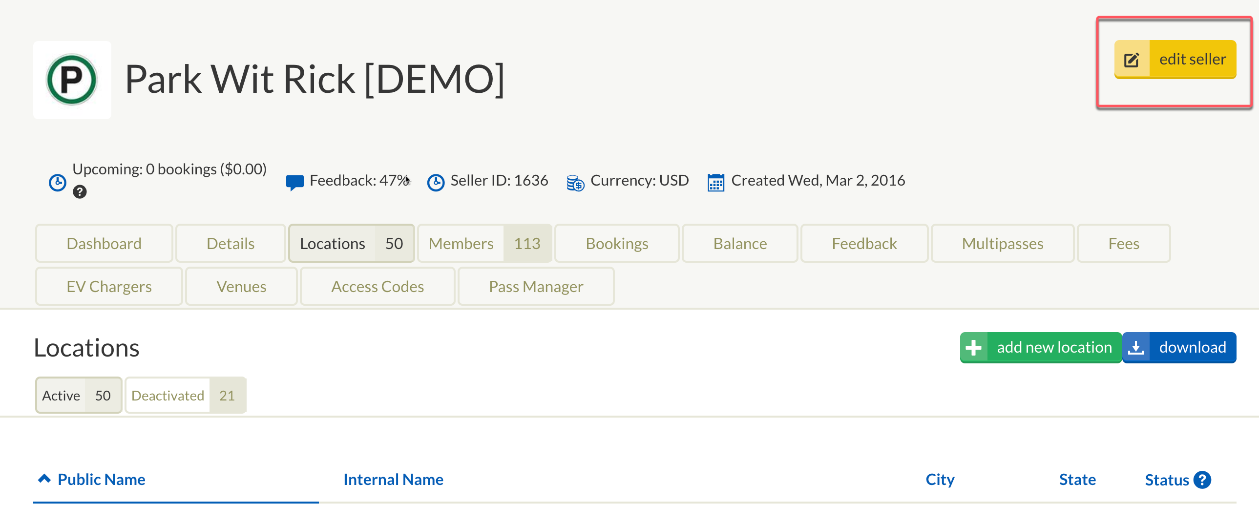 | Locations | List of locations associated with your seller account that you have access to. |