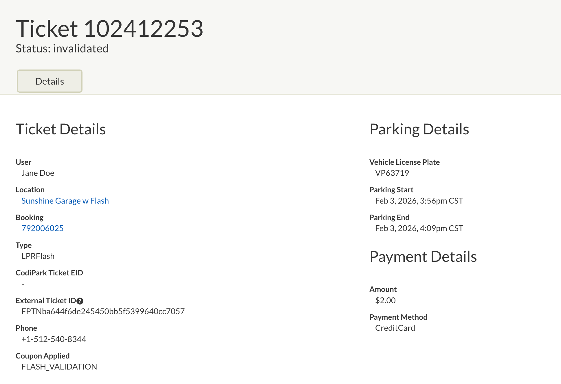 - Invalidated: Digital parking session was cancelled (unlinked from the PARCS Transient ticket) or refunded.