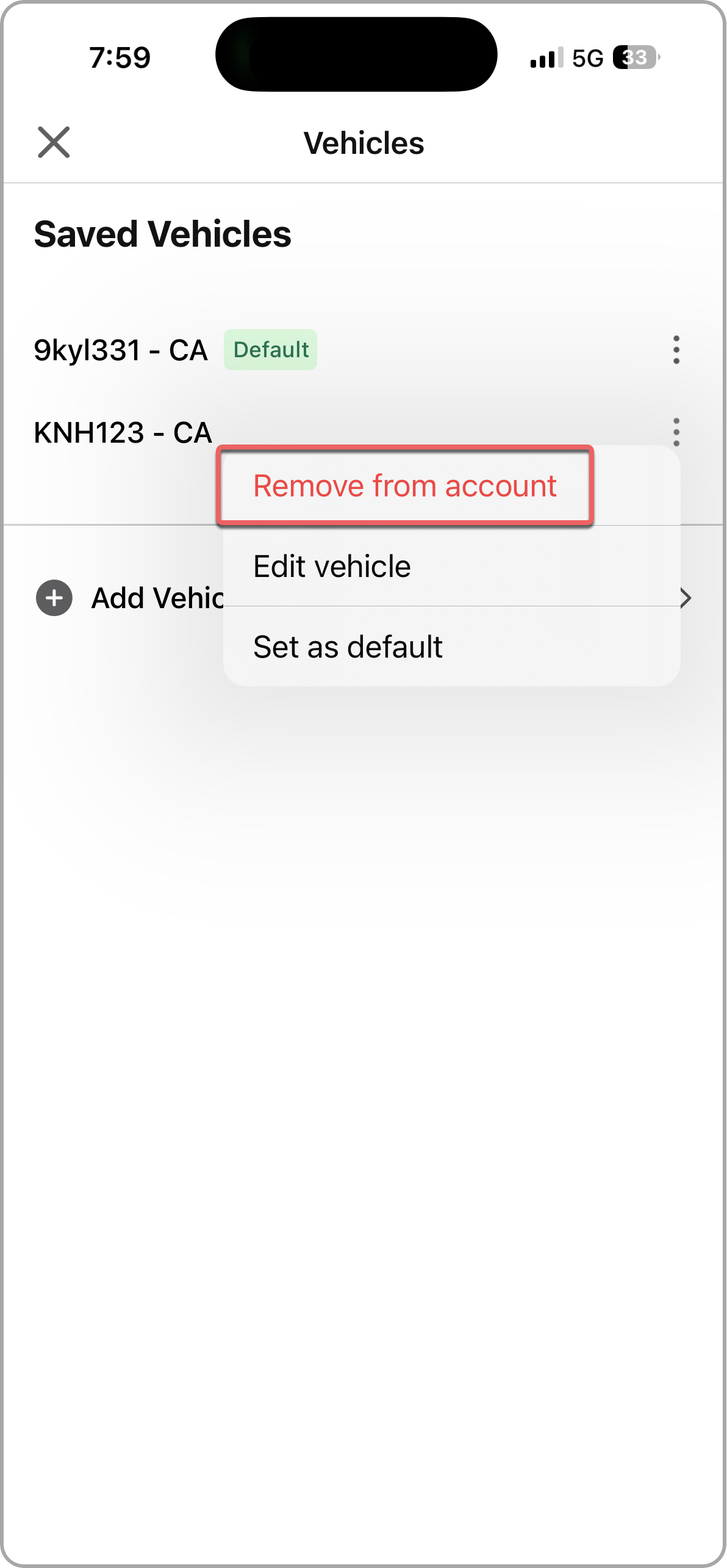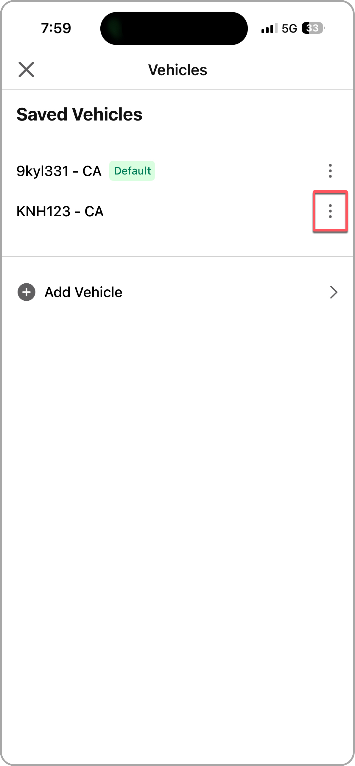 - Tap the three dots (⋯) next to the vehicle you want to remove.